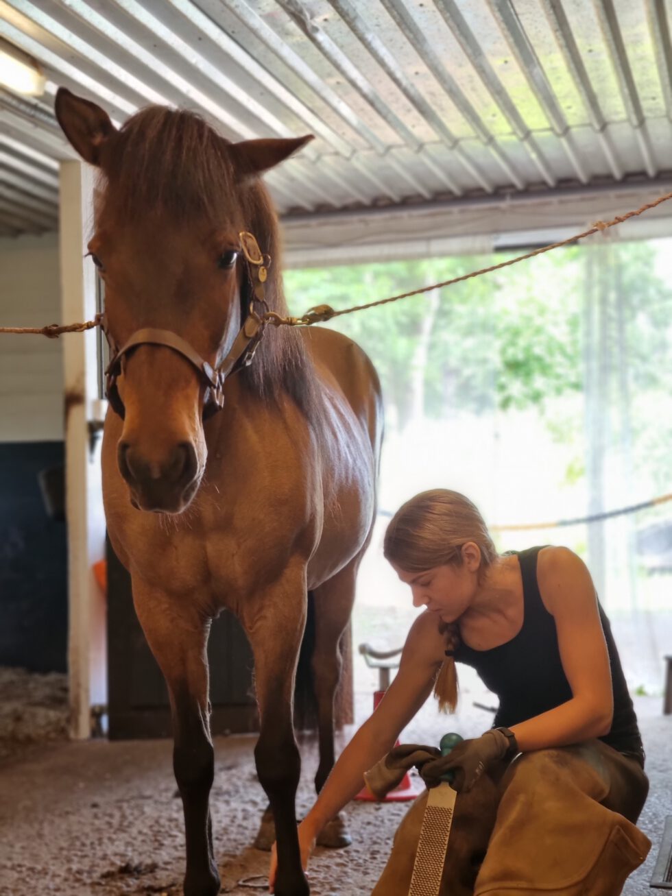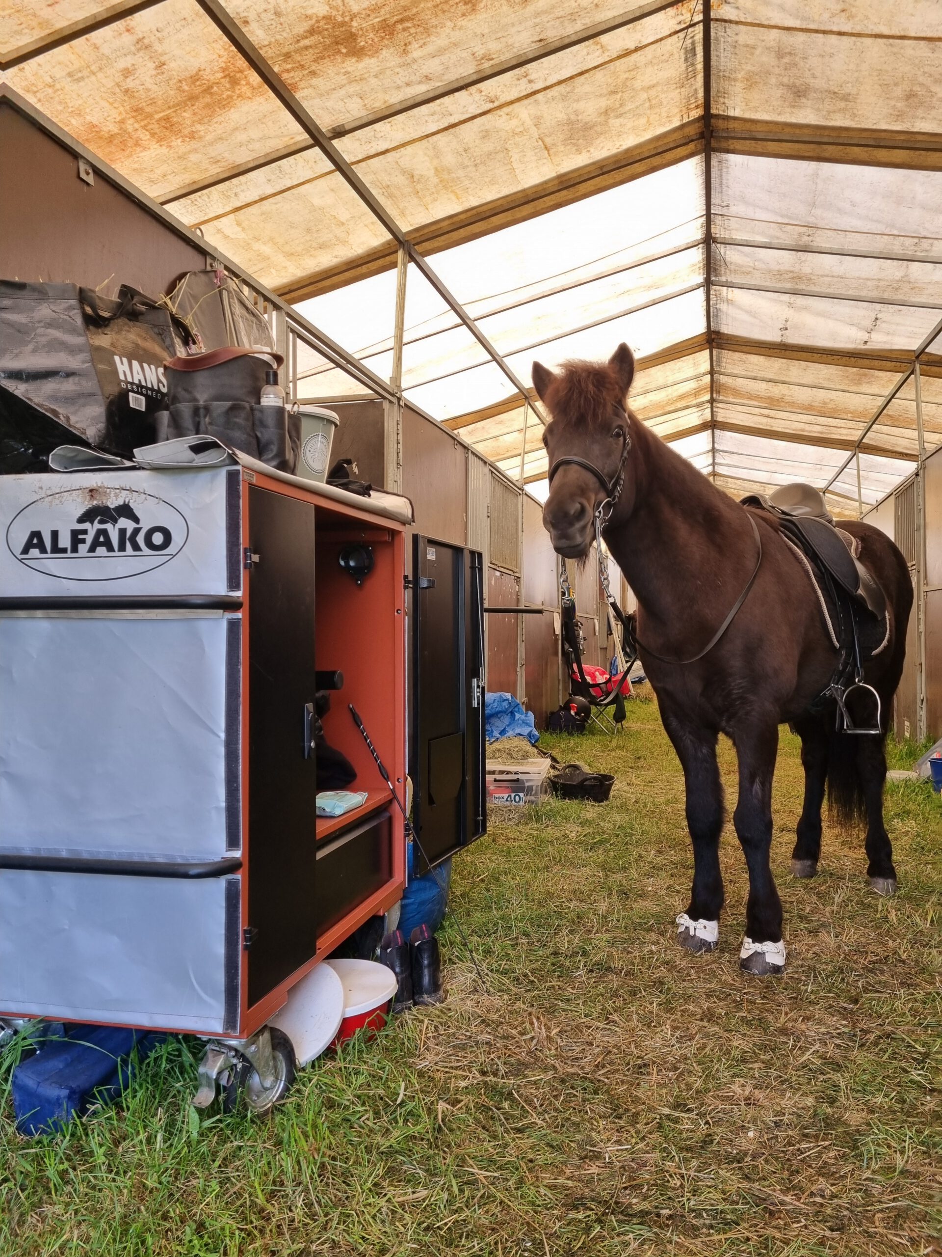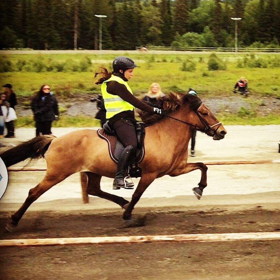 Sísí såg vi för första gången under en gårdsresa till Island hösten 2014 på gården Björg Hörgárdal utanför Akureyri. Gårdens ägare, Olafía Snaelaugsdóttir & Vidar Bragason, som sedan gårdsbesöket blivit väldigt nära vänner, gav mig möjligheten att tävla Sísí innan hon landade på svenska mark och sommaren 2015 startade vi Aflokk och P2 på Fjórdungsmót Austurlands.