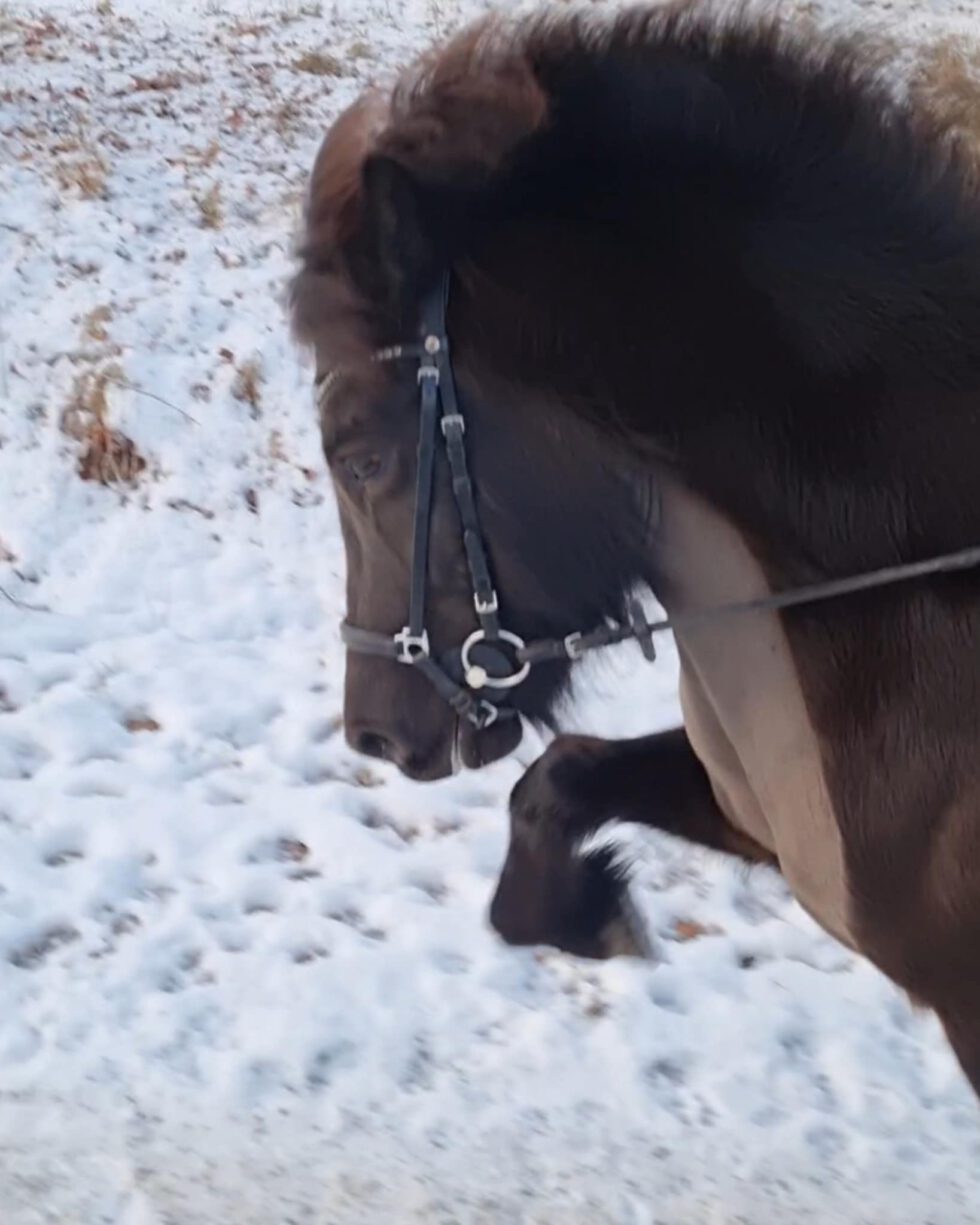 Barbara, unghästen som vi föll pladask för efter en kort film på Instagram när hon var 2 år gammal. Hennes mamma Björg (e. Móli frá Skridu) är syster till Sísí och avelssto på gården Björg Hörgárdal efter en framgångsrik tävlingskarriär där hon bland annat tävlats på Landsmot. Ända sedan 2014 har vi drömt om att få äga ett sto efter henne. Lexus frá Björgum (e: Víti frá Kagadarhóli) fick jag möjligheten att rida på Island, då 5 år gammal och väldigt lovande.